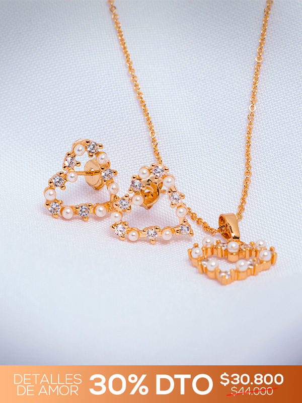 💎 Set en Rodio Corazones con Perlas 💎