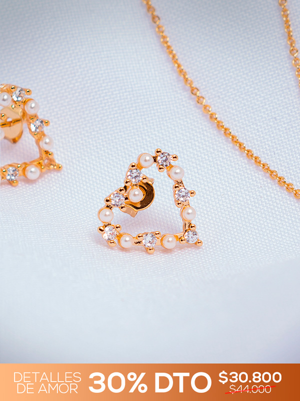 Un diseño romántico y delicado que combina la elegancia del rodio dorado con el brillo de circones y la sutileza de perlas incrustadas. Perfecto para quienes buscan un accesorio lleno de amor y sofisticación.