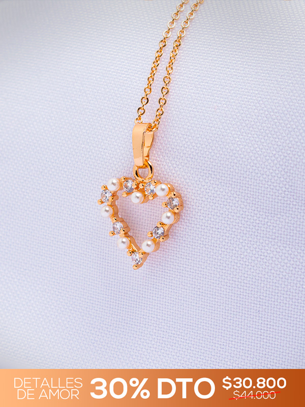 📿 Collar con dije en forma de corazón adornado con perlas y circones